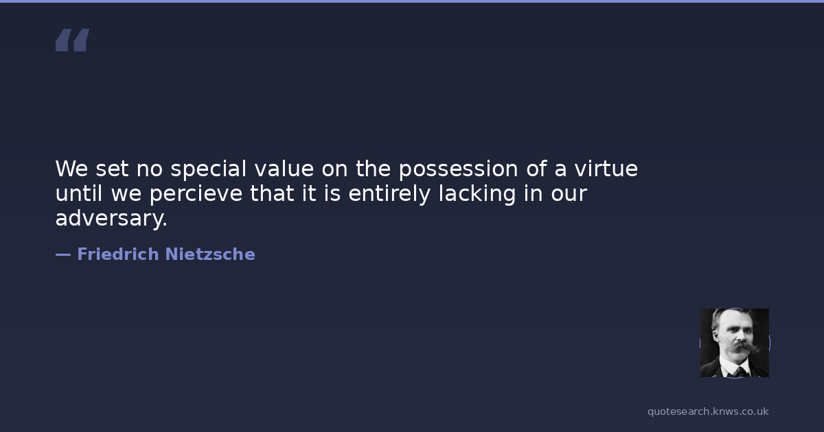 We set no special value on the possession of a virtue until we percieve that it is entirely lacking in our adversary.