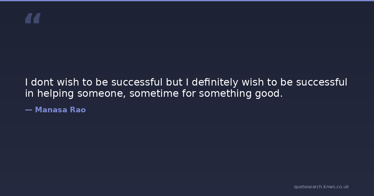 I dont wish to be successful but I definitely wish to be successful in helping someone, sometime for something good.