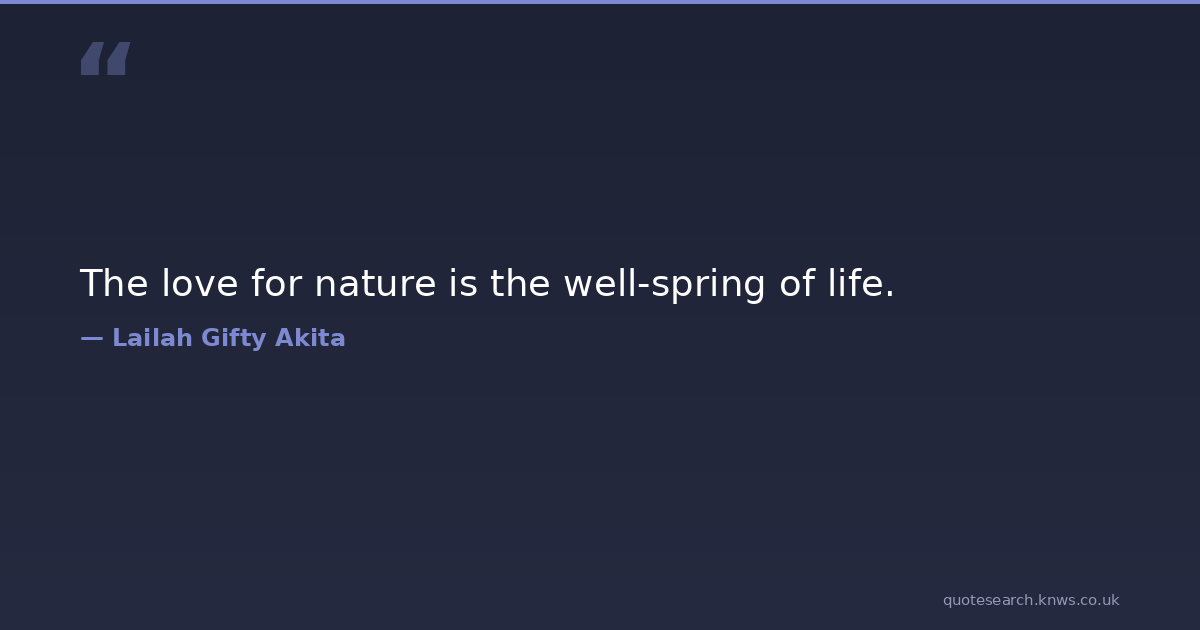 The love for nature is the well-spring of life. cleanliness environment environmental-protection healthy healthy-living inspiring life love nature wisdom-of-lailah-gifty-akita wise-words Download Image Share on X Share on Facebook Copy Link