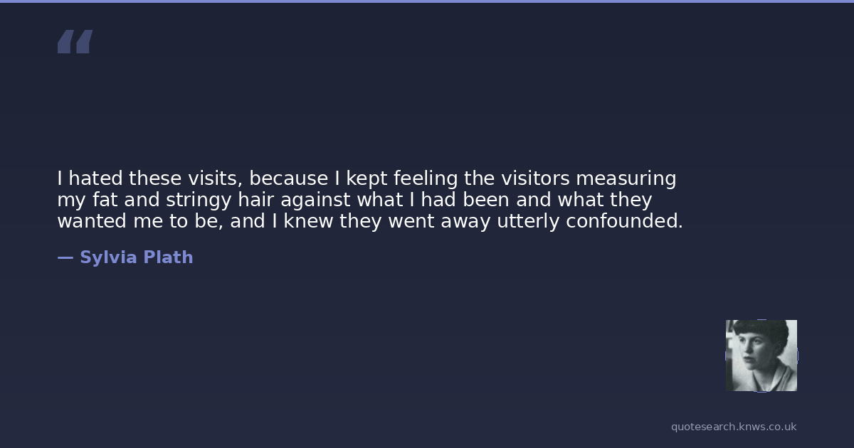I hated these visits, because I kept feeling the visitors measuring my fat and stringy hair against what I had been and what they wanted me to be, and I knew they went away utterly confounded.