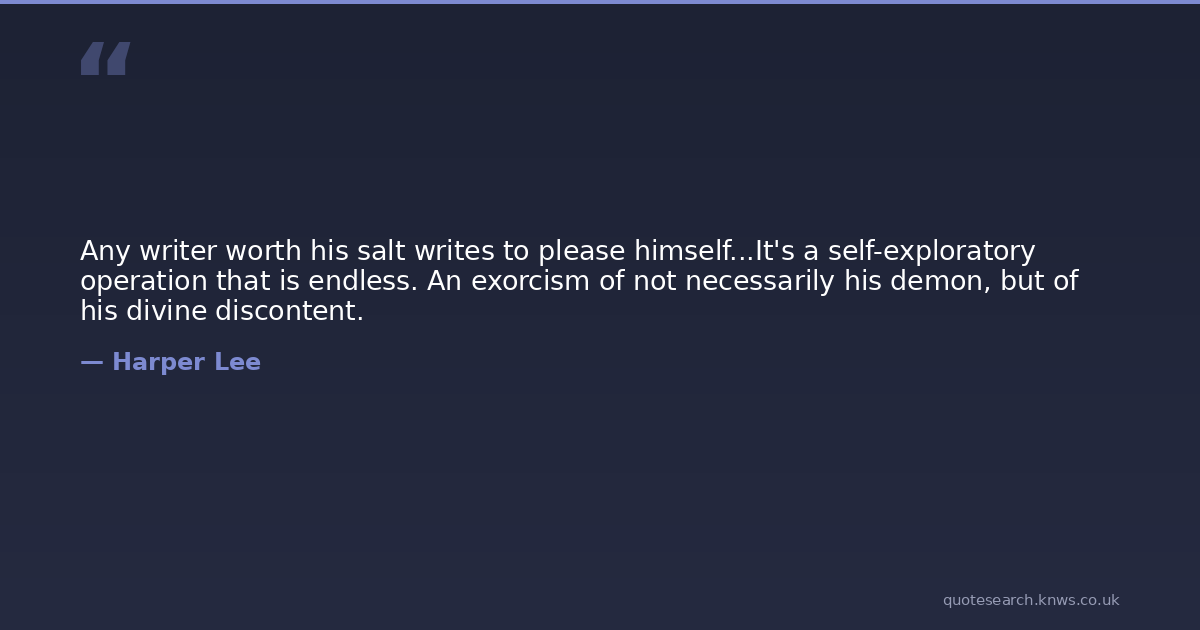Any writer worth his salt writes to please himself...It's a self-exploratory operation that is endless. An exorcism of not necessarily his demon, but of his divine discontent.
