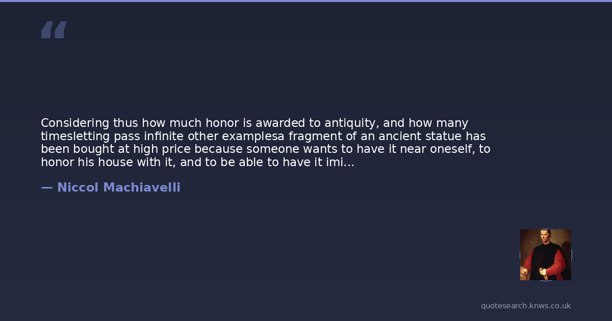 Considering thus how much honor is awarded to antiquity, and how many timesletting pass infinite other examplesa fragment of an ancient statue has been bought at high price because someone wants to have it near oneself, to honor his house with it, and to be able to have it imitated by those who delight in that art, and how the latter then strive with all industry to represent it in all their works; and seeing, on the other hand, that the most virtuous works the histories show us, which have been done by ancient kingdoms and republics, by kings, captains, citizens, legislators, and others who have labored for their fatherland, are rather admired than imitatedindeed they are so much shunned by everyone in every least thing that no sign of that ancient virtue remains with usI can do no other than marvel and grieve From this it arises that the infinite number who read [the histories] take pleasure in hearing of the variety of accidents contained within them without thinking of imitating them, judging that imitation is not only difficult but impossibleas if heaven, sun, elements, men had varied in motion, order, and power from what they were in antiquity. Wishing, therefore, to turn men from this error, I have judged it necessary to write on all those books of Titus Livy...