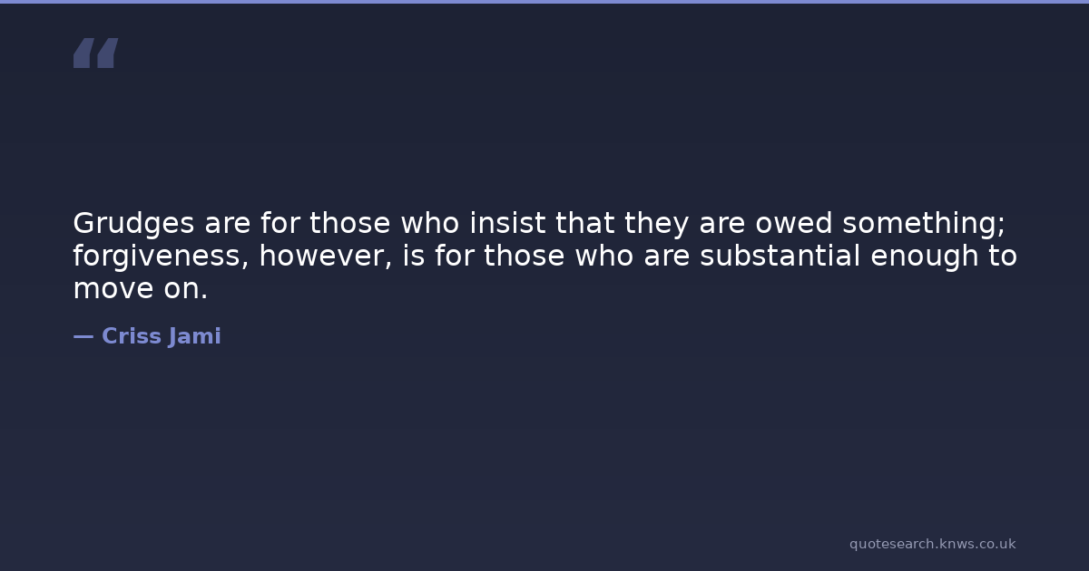 Grudges are for those who insist that they are owed something; forgiveness, however, is for those who are substantial enough to move on.