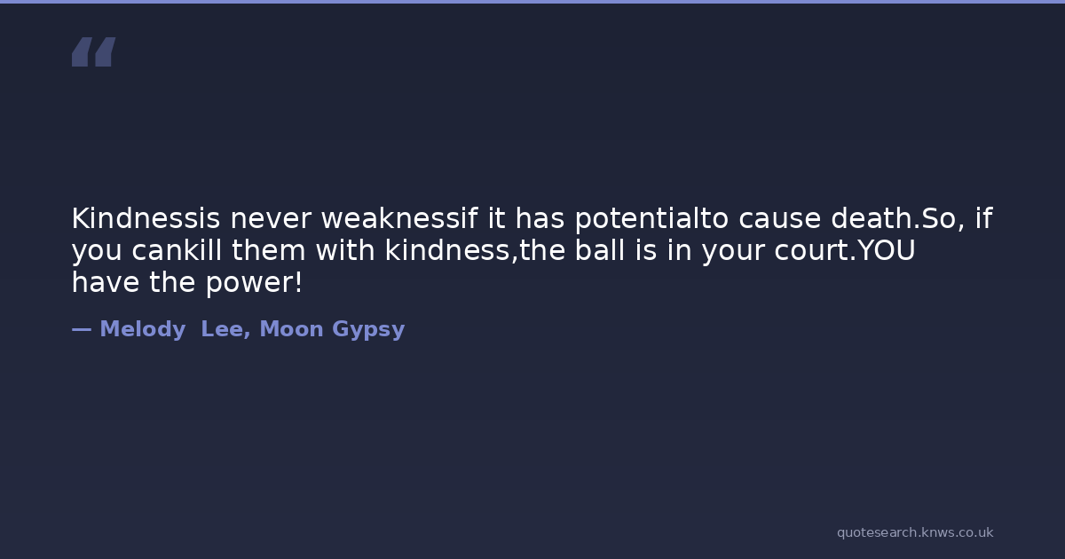 Kindnessis never weaknessif it has potentialto cause death.So, if you cankill them with kindness,the ball is in your court.YOU have the power!