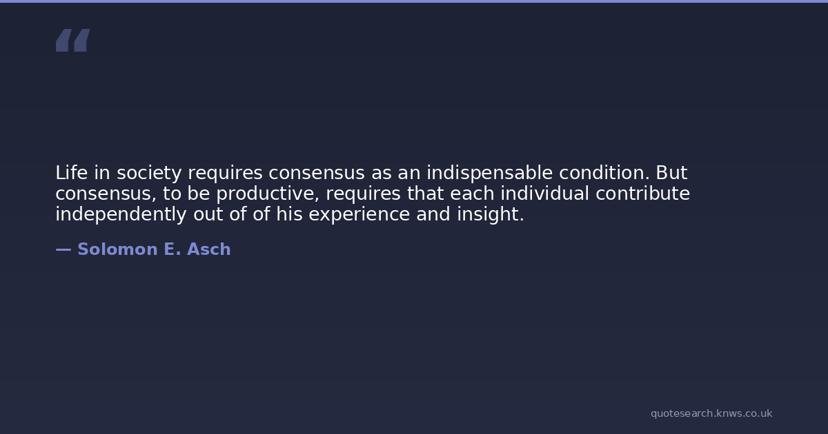 Life in society requires consensus as an indispensable condition. But consensus, to be productive, requires that each individual contribute independently out of of his experience and insight.