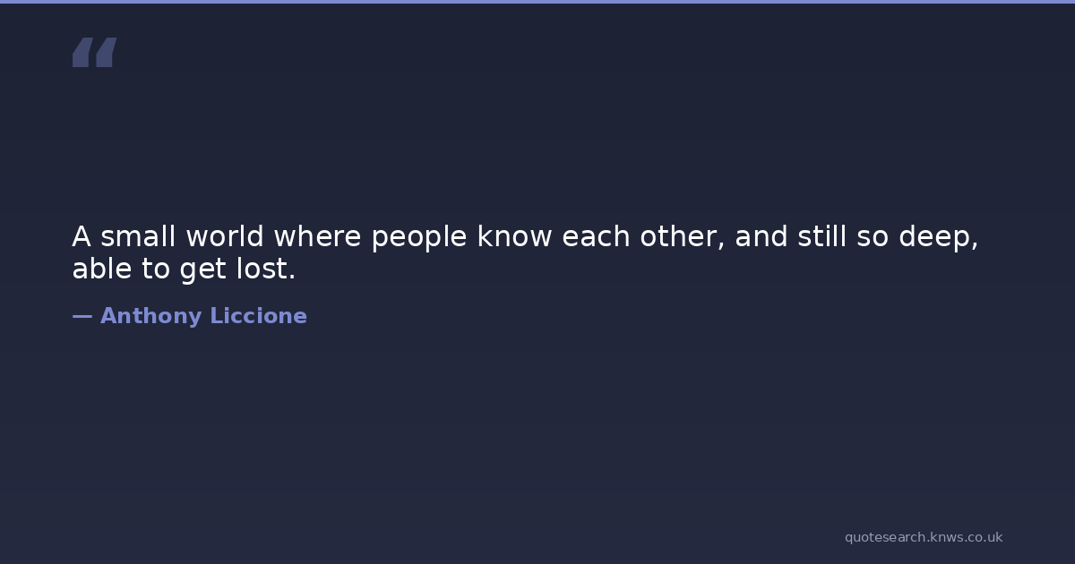 A small world where people know each other, and still so deep, able to get lost.