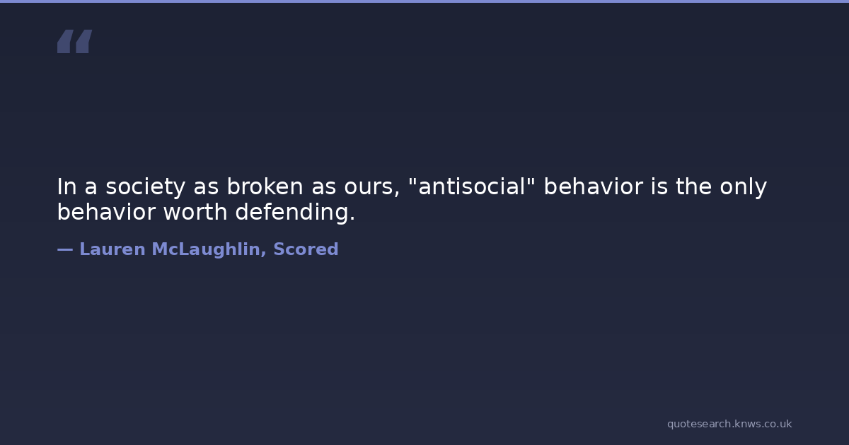 In a society as broken as ours, "antisocial" behavior is the only behavior worth defending. society Download Image Share on X Share on Facebook Copy Link