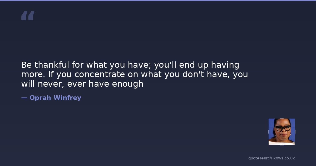 Be thankful for what you have; you'll end up having more. If you concentrate on what you don't have, you will never, ever have enough