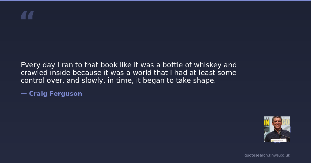 Every day I ran to that book like it was a bottle of whiskey and crawled inside because it was a world that I had at least some control over, and slowly, in time, it began to take shape.