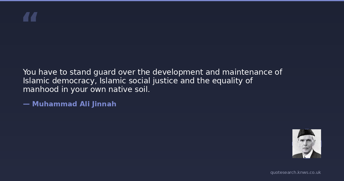 You have to stand guard over the development and maintenance of Islamic democracy, Islamic social justice and the equality of manhood in your own native soil.