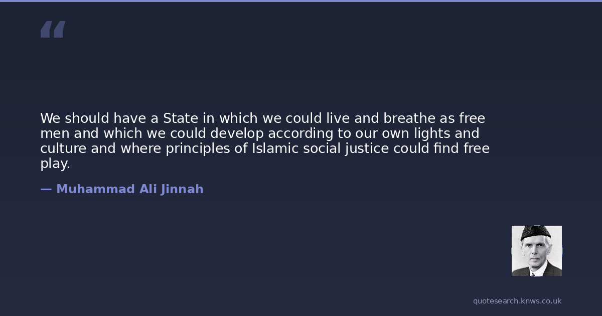 We should have a State in which we could live and breathe as free men and which we could develop according to our own lights and culture and where principles of Islamic social justice could find free play.
