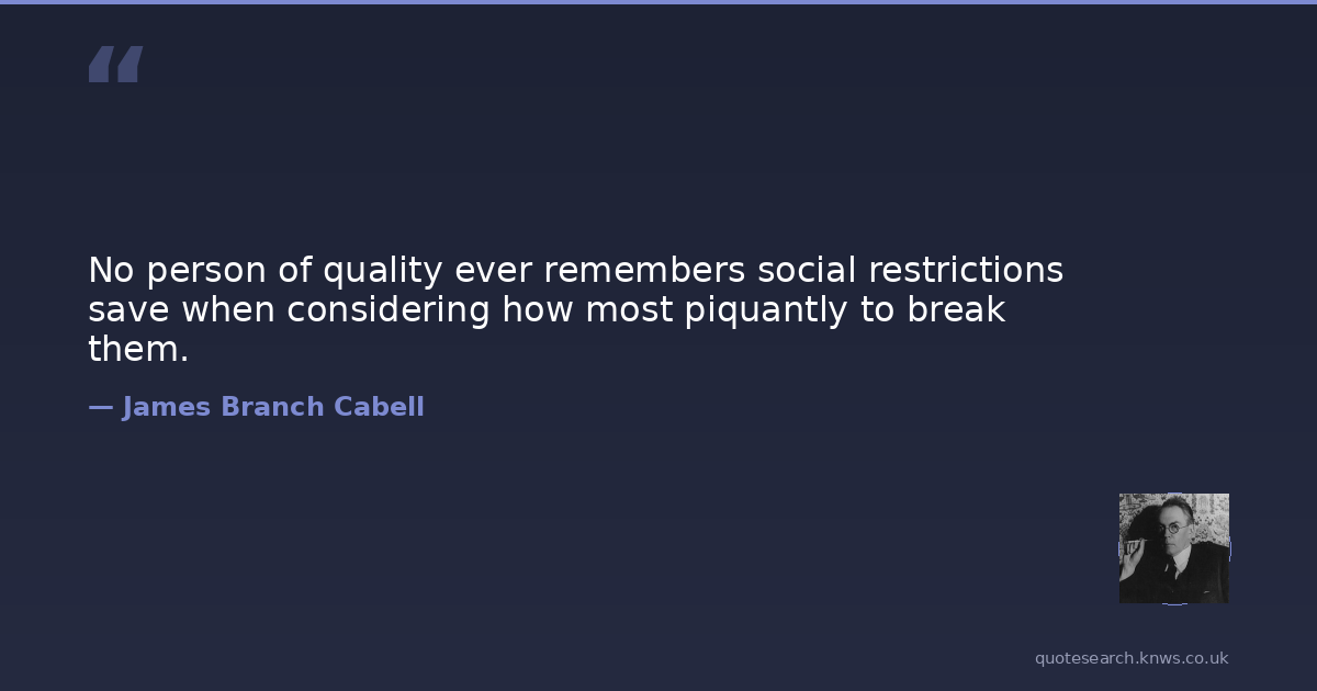 No person of quality ever remembers social restrictions save when considering how most piquantly to break them.