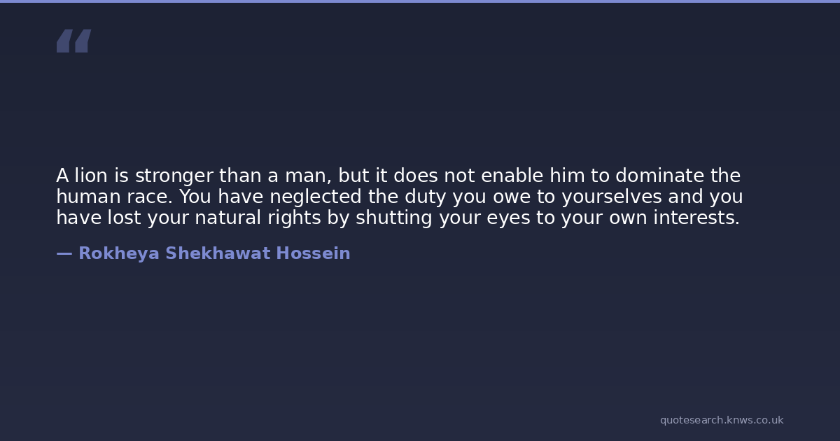 A lion is stronger than a man, but it does not enable him to dominate the human race. You have neglected the duty you owe to yourselves and you have lost your natural rights by shutting your eyes to your own interests.