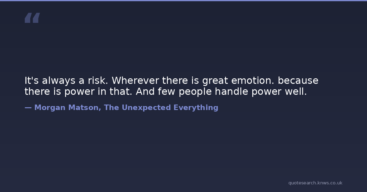 It's always a risk. Wherever there is great emotion. because there is power in that. And few people handle power well.