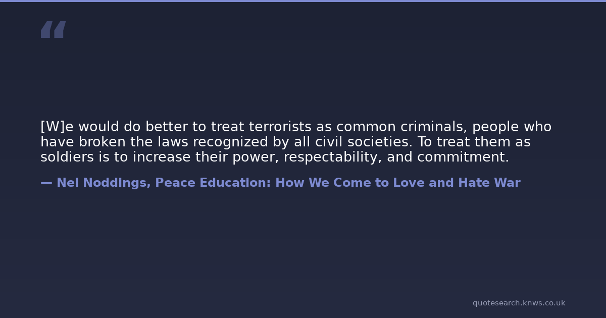 [W]e would do better to treat terrorists as common criminals, people who have broken the laws recognized by all civil societies. To treat them as soldiers is to increase their power, respectability, and commitment.