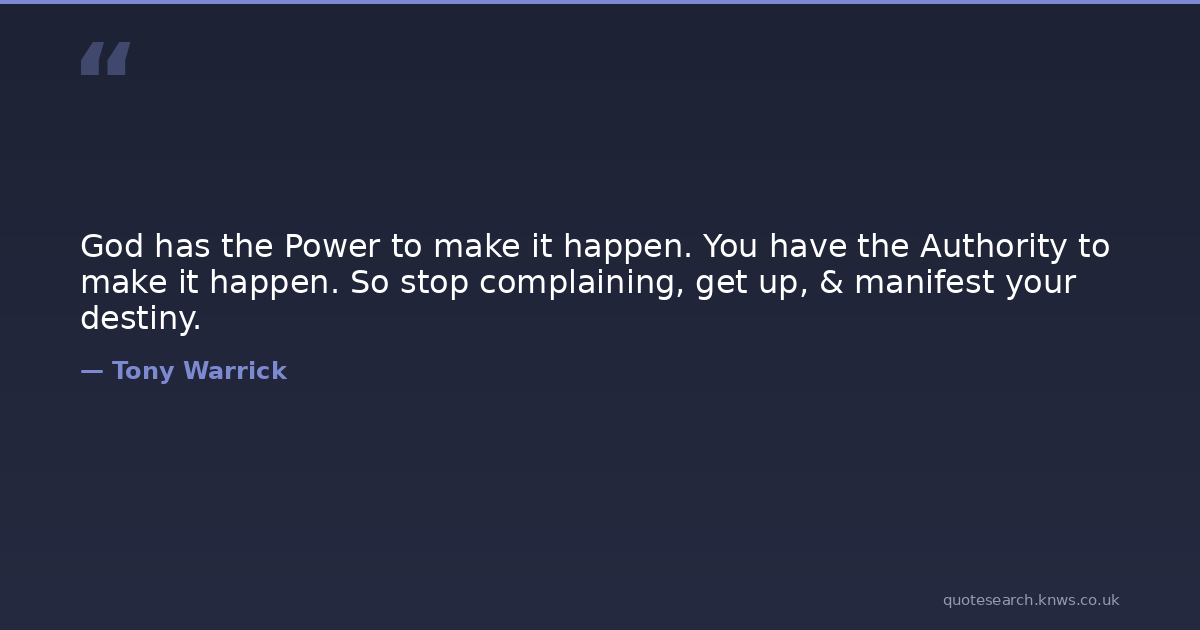God has the Power to make it happen. You have the Authority to make it happen. So stop complaining, get up, & manifest your destiny.