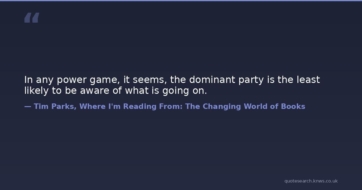 In any power game, it seems, the dominant party is the least likely to be aware of what is going on.