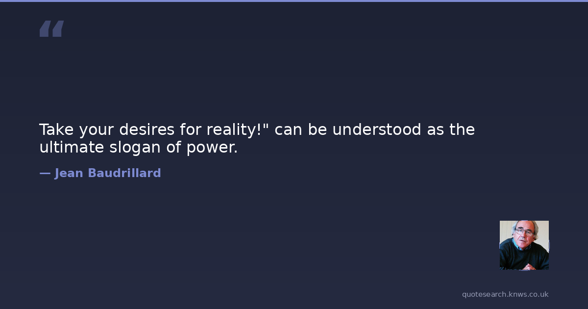 Take your desires for reality!" can be understood as the ultimate slogan of power.