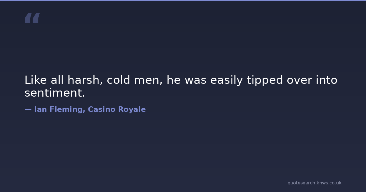 Like all harsh, cold men, he was easily tipped over into sentiment. psychology Download Image Share on X Share on Facebook Copy Link