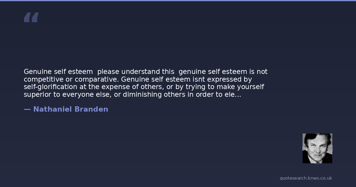 Genuine self esteem please understand this genuine self esteem is not competitive or comparative. Genuine self esteem isnt expressed by self-glorification at the expense of others, or by trying to make yourself superior to everyone else, or diminishing others in order to elevate yourself. Arrogance, boastfulness, the overestimation of your abilities, reflect low self esteem, even though were often encouraged to believe the opposite. In human beings, joy in the simple fact of existence is a core meaning of healthy self esteem. Thus understood, how can you possibly have too much of it?