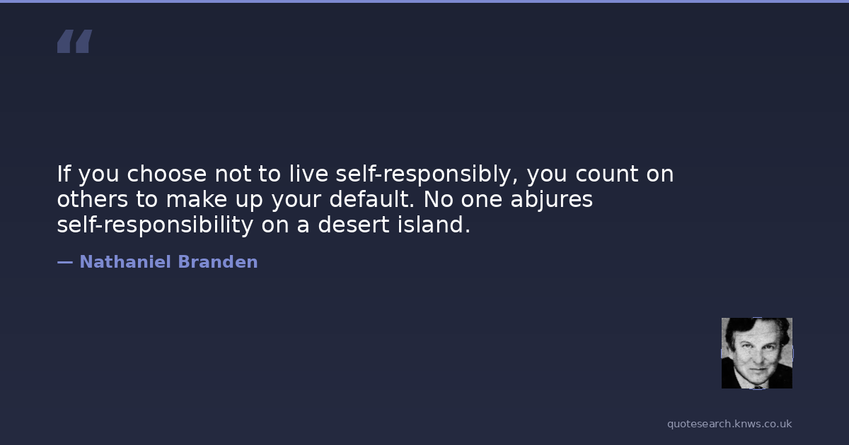 If you choose not to live self-responsibly, you count on others to make up your default. No one abjures self-responsibility on a desert island.