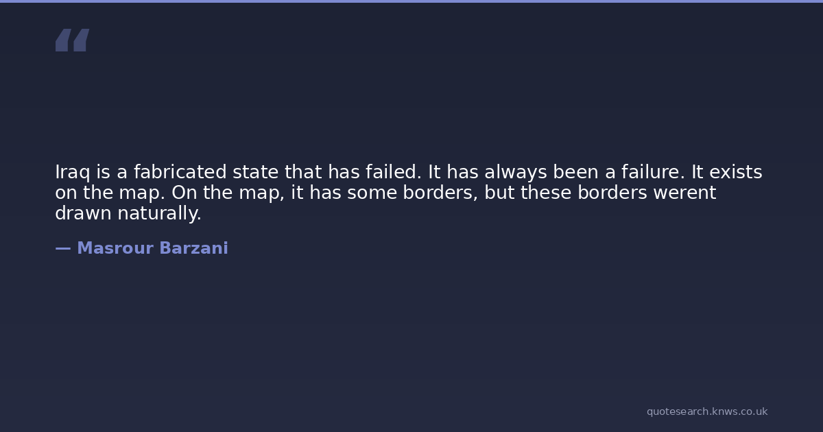 Iraq is a fabricated state that has failed. It has always been a failure. It exists on the map. On the map, it has some borders, but these borders werent drawn naturally.