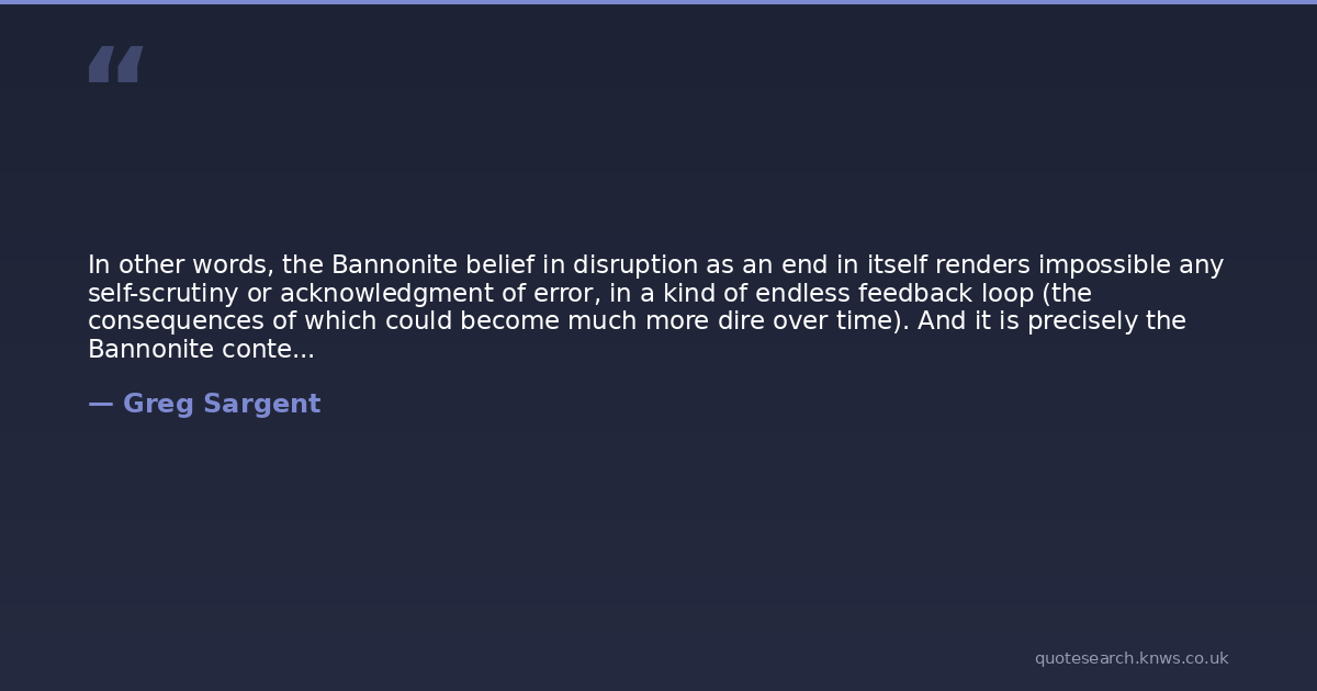 In other words, the Bannonite belief in disruption as an end in itself renders impossible any self-scrutiny or acknowledgment of error, in a kind of endless feedback loop (the consequences of which could become much more dire over time). And it is precisely the Bannonite contempt for procedural and institutional knowledge that is partly responsible for creating all of the logistical and legal problems to begin with.