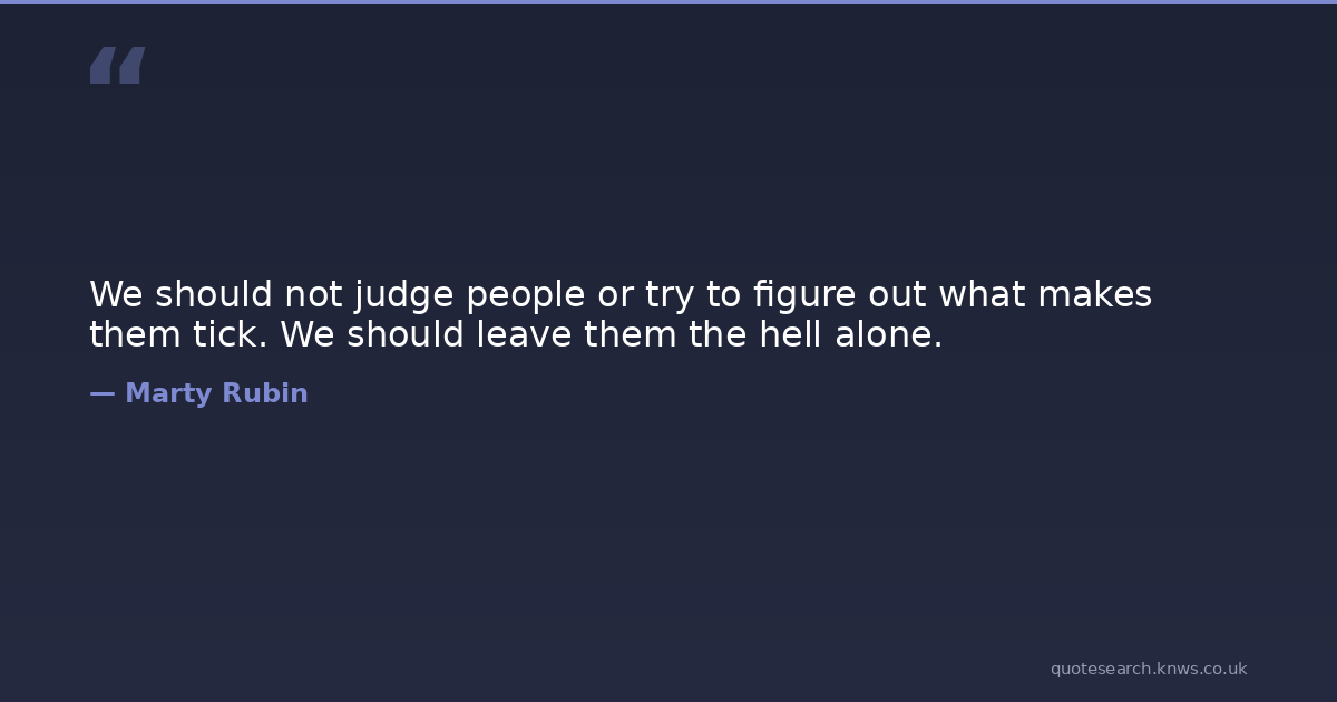 We should not judge people or try to figure out what makes them tick. We should leave them the hell alone.