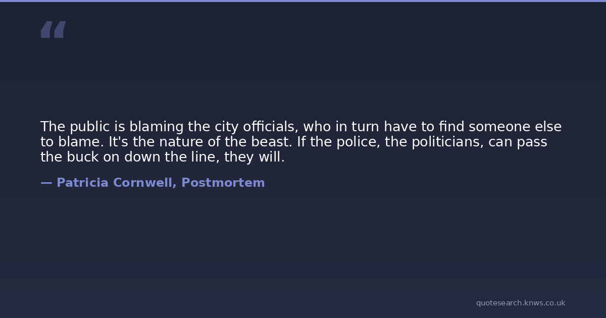 The public is blaming the city officials, who in turn have to find someone else to blame. It's the nature of the beast. If the police, the politicians, can pass the buck on down the line, they will.