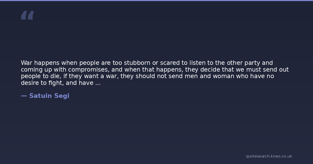 War happens when people are too stubborn or scared to listen to the other party and coming up with compromises, and when that happens, they decide that we must send out people to die, if they want a war, they should not send men and woman who have no desire to fight, and have no real reason, if they want to fight the people running the show should do it themselves, they are basically murdering a lot of good people through their own cowardice.