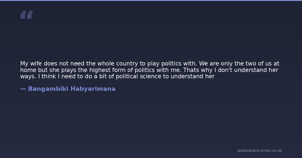 My wife does not need the whole country to play politics with. We are only the two of us at home but she plays the highest form of politics with me. Thats why I don't understand her ways. I think I need to do a bit of political science to understand her