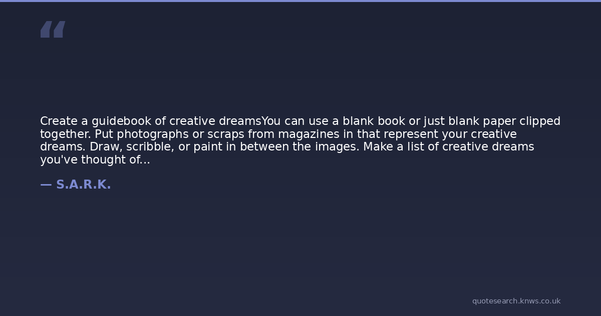 Create a guidebook of creative dreamsYou can use a blank book or just blank paper clipped together. Put photographs or scraps from magazines in that represent your creative dreams. Draw, scribble, or paint in between the images. Make a list of creative dreams you've thought of or admire in others.