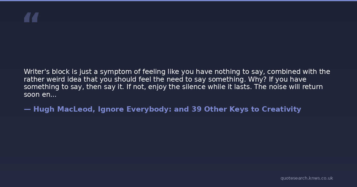 Writer's block is just a symptom of feeling like you have nothing to say, combined with the rather weird idea that you should feel the need to say something. Why? If you have something to say, then say it. If not, enjoy the silence while it lasts. The noise will return soon enough.