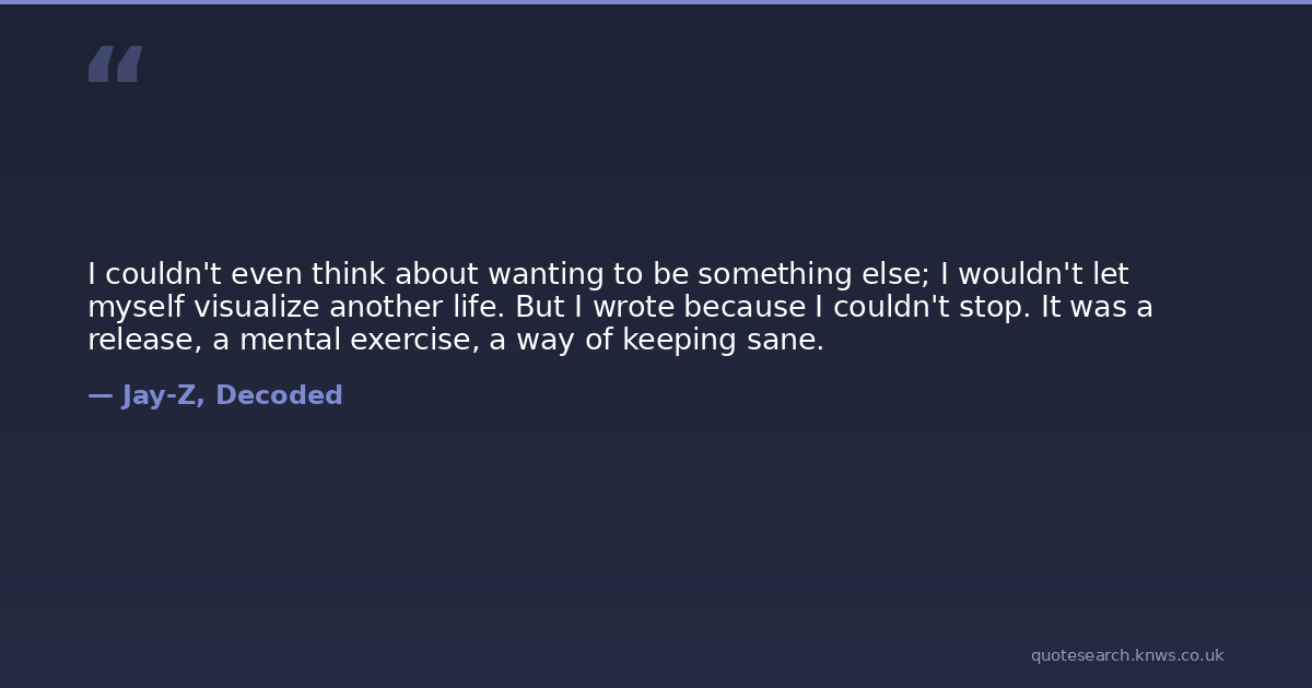 I couldn't even think about wanting to be something else; I wouldn't let myself visualize another life. But I wrote because I couldn't stop. It was a release, a mental exercise, a way of keeping sane.