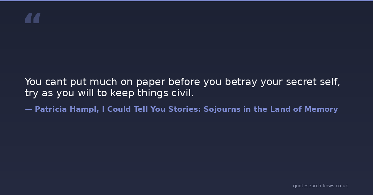 You cant put much on paper before you betray your secret self, try as you will to keep things civil. writing Download Image Share on X Share on Facebook Copy Link