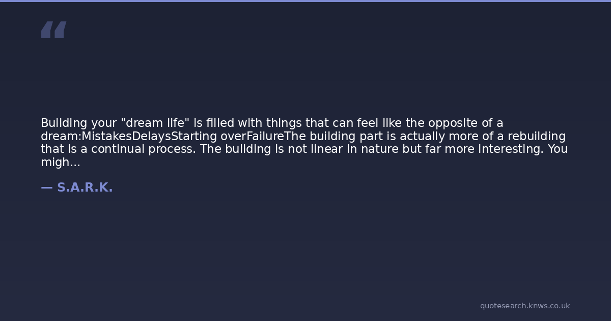 Building your "dream life" is filled with things that can feel like the opposite of a dream:MistakesDelaysStarting overFailureThe building part is actually more of a rebuilding that is a continual process. The building is not linear in nature but far more interesting. You might start a creative dream, take the "next step", and find yourself completely bored, dissatisfied, or just not inspired.