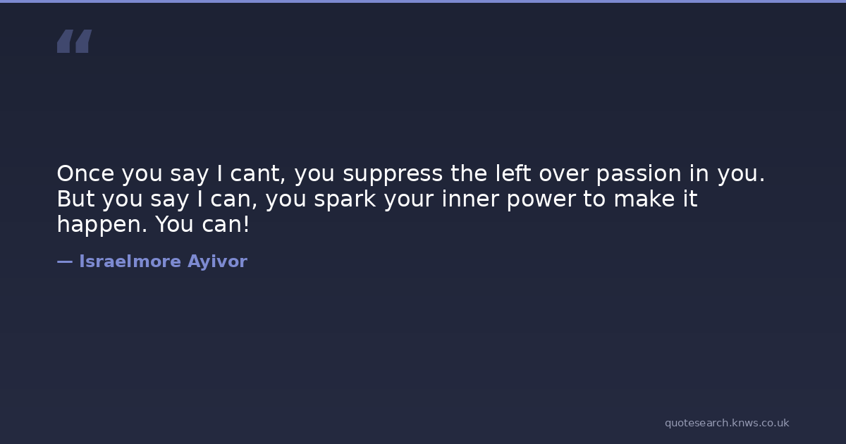 Once you say I cant, you suppress the left over passion in you. But you say I can, you spark your inner power to make it happen. You can!