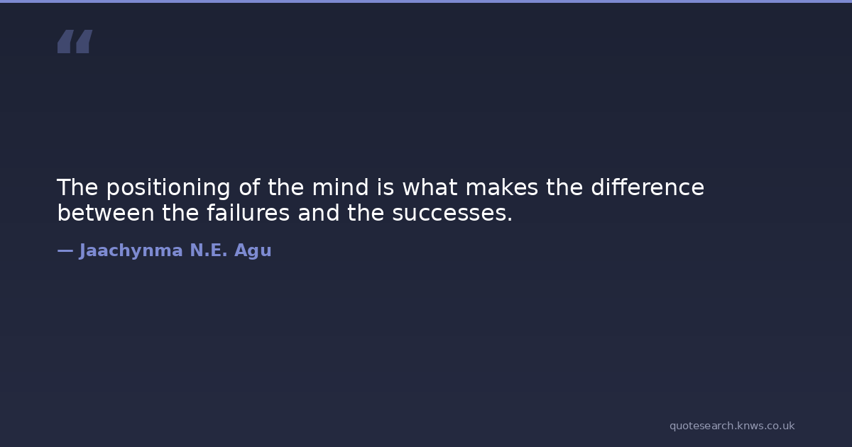 The positioning of the mind is what makes the difference between the failures and the successes.