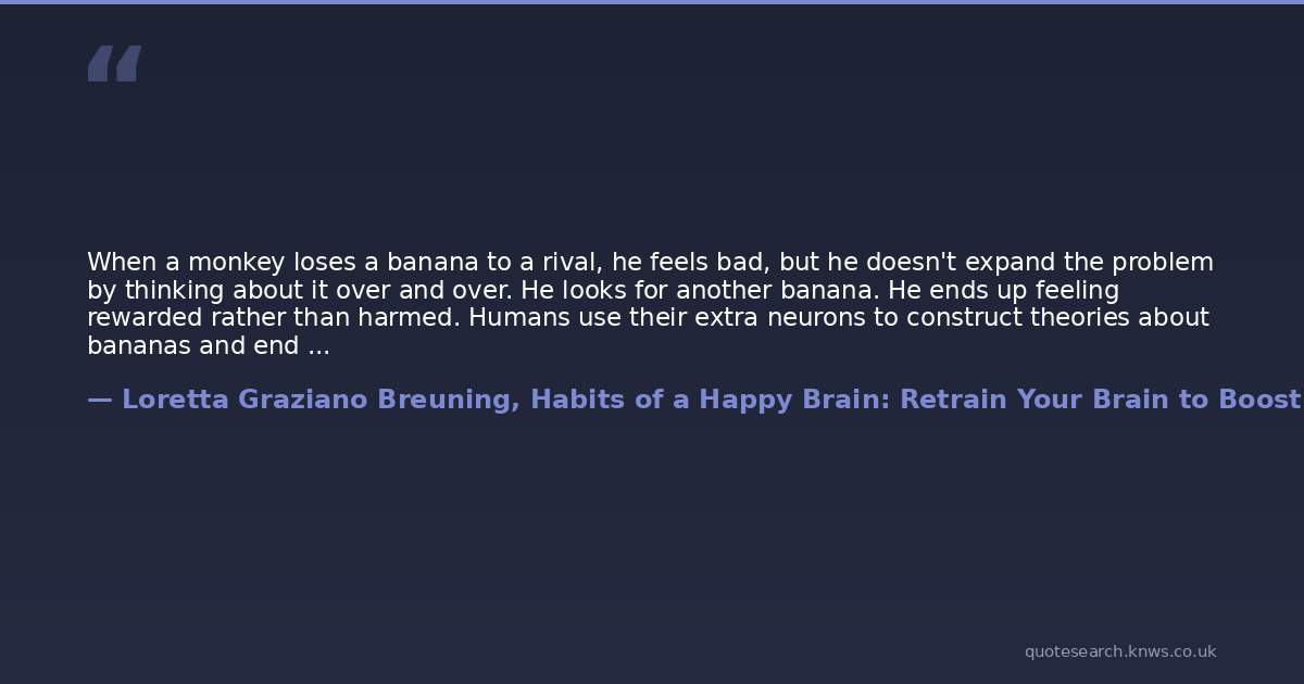 When a monkey loses a banana to a rival, he feels bad, but he doesn't expand the problem by thinking about it over and over. He looks for another banana. He ends up feeling rewarded rather than harmed. Humans use their extra neurons to construct theories about bananas and end up constructing pain.