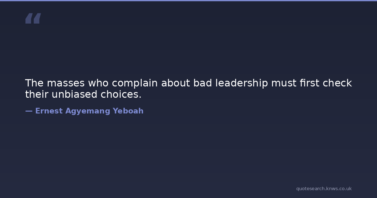 The masses who complain about bad leadership must first check their unbiased choices.