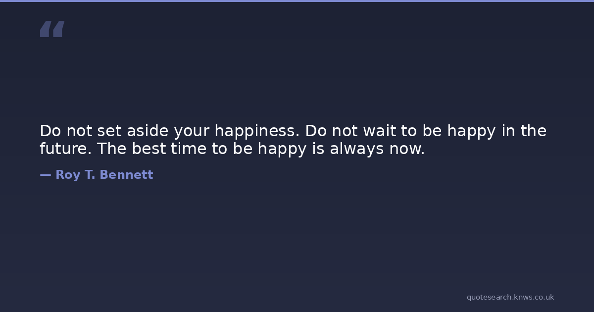 Do not set aside your happiness. Do not wait to be happy in the future. The best time to be happy is always now.