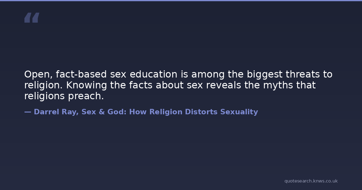 Open, fact-based sex education is among the biggest threats to religion. Knowing the facts about sex reveals the myths that religions preach.