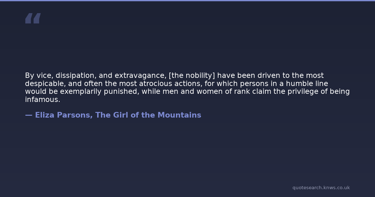By vice, dissipation, and extravagance, [the nobility] have been driven to the most despicable, and often the most atrocious actions, for which persons in a humble line would be exemplarily punished, while men and women of rank claim the privilege of being infamous.