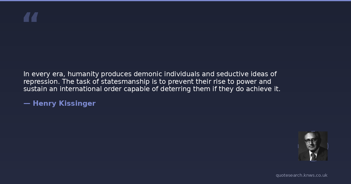 In every era, humanity produces demonic individuals and seductive ideas of repression. The task of statesmanship is to prevent their rise to power and sustain an international order capable of deterring them if they do achieve it.