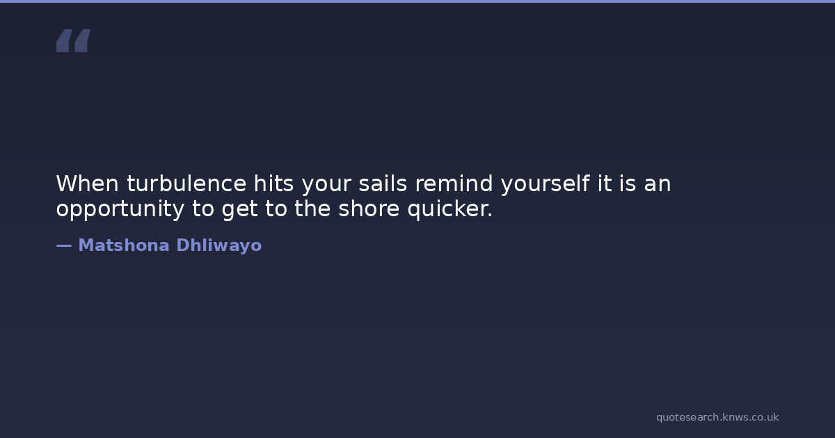 When turbulence hits your sails remind yourself it is an opportunity to get to the shore quicker.