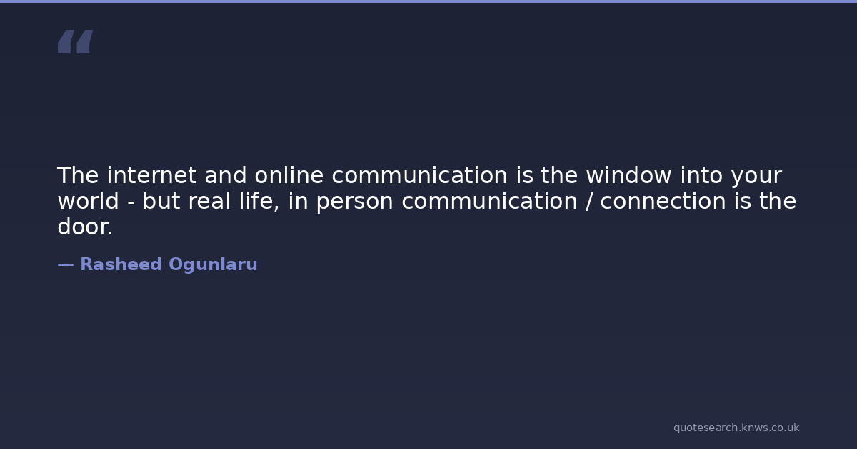 The internet and online communication is the window into your world - but real life, in person communication / connection is the door.
