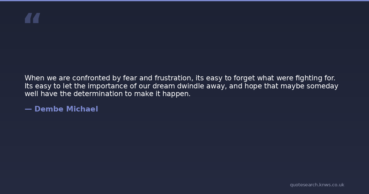 When we are confronted by fear and frustration, its easy to forget what were fighting for. Its easy to let the importance of our dream dwindle away, and hope that maybe someday well have the determination to make it happen.