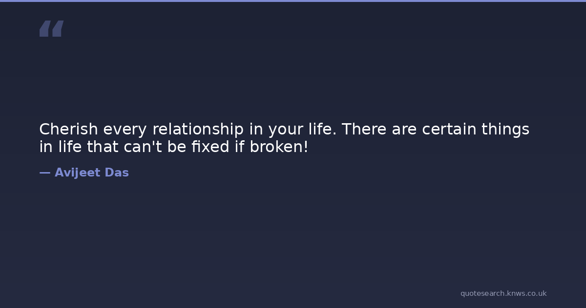Cherish every relationship in your life. There are certain things in life that can't be fixed if broken!
