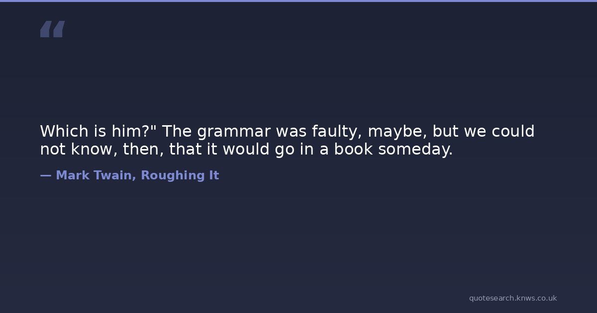 Which is him?" The grammar was faulty, maybe, but we could not know, then, that it would go in a book someday.
