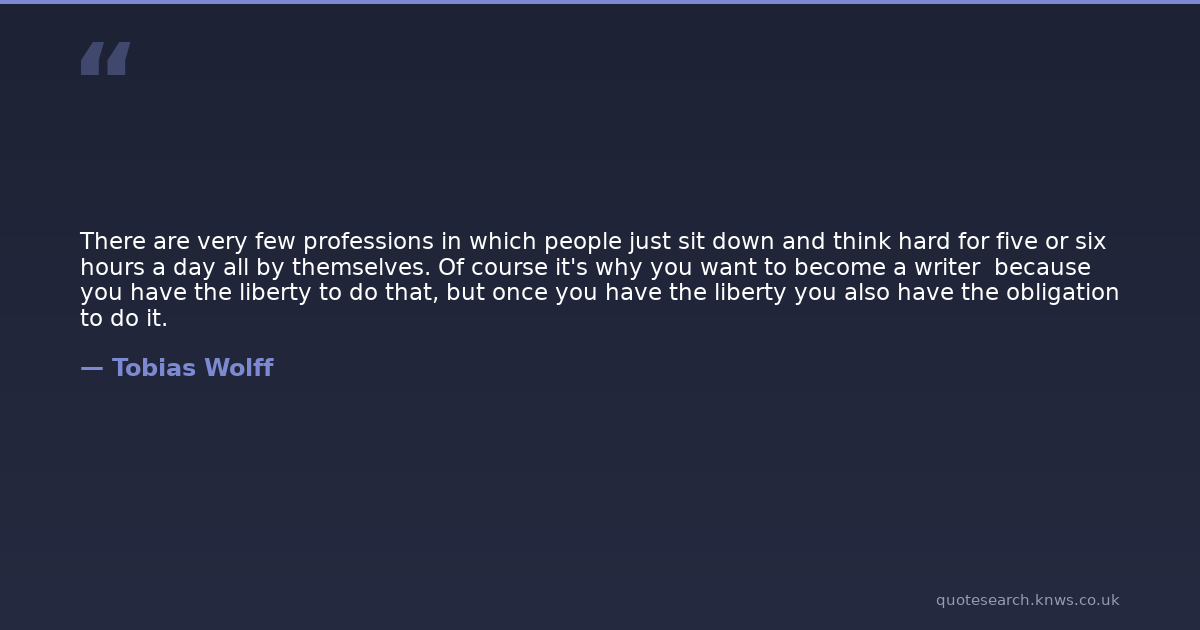 There are very few professions in which people just sit down and think hard for five or six hours a day all by themselves. Of course it's why you want to become a writer because you have the liberty to do that, but once you have the liberty you also have the obligation to do it.